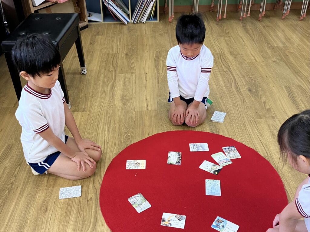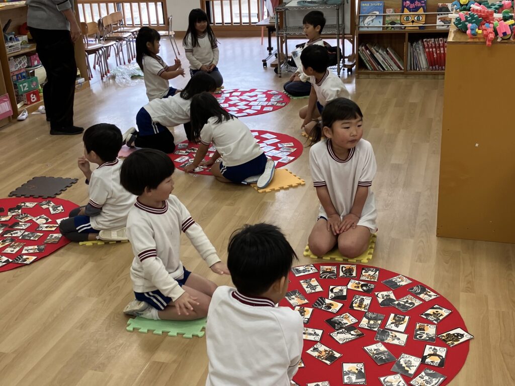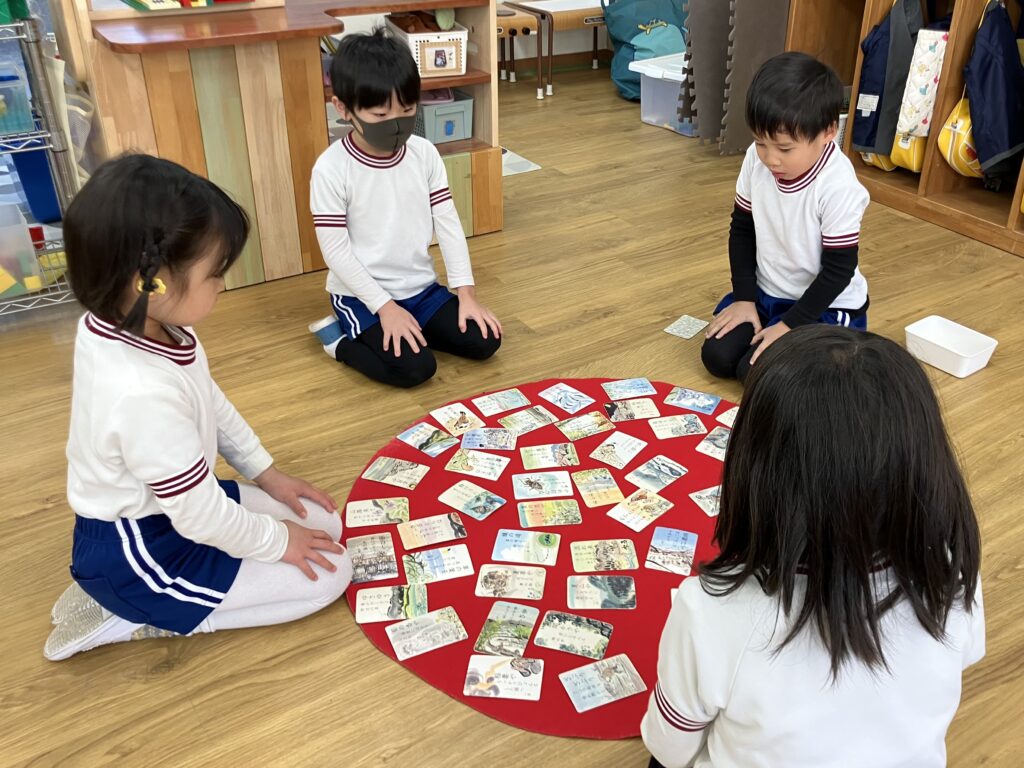かるた会では、日頃の成果を発揮しようと、いつもより集中して取り組む姿が見られました。たくさん札が取れて喜んでいる子もいれば、なかなか実力が発揮できず悔しそうな表情を見せる子もいました。それぞれの活動への思いを保護者の方に見て、感じていただけたのではないかと思います。